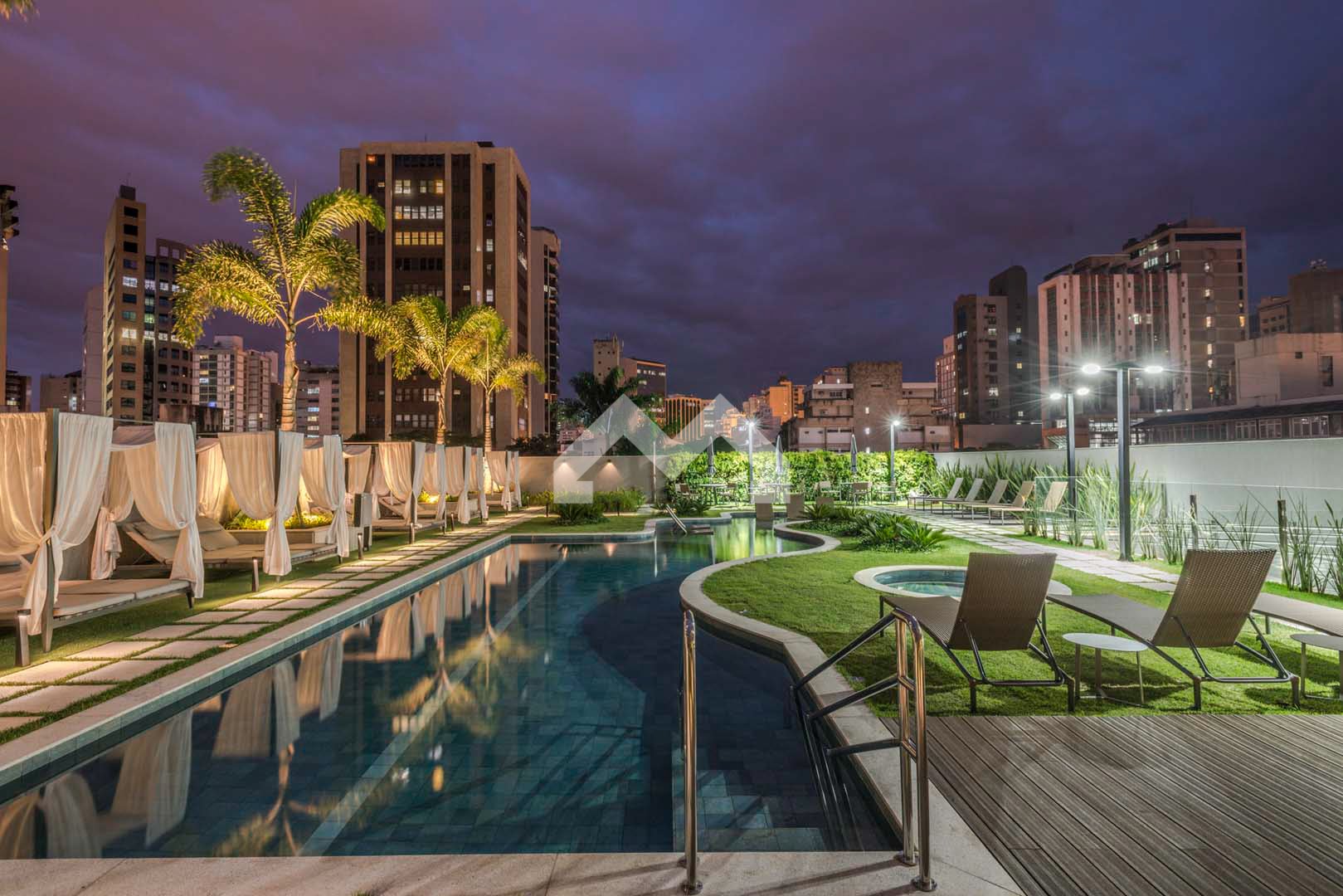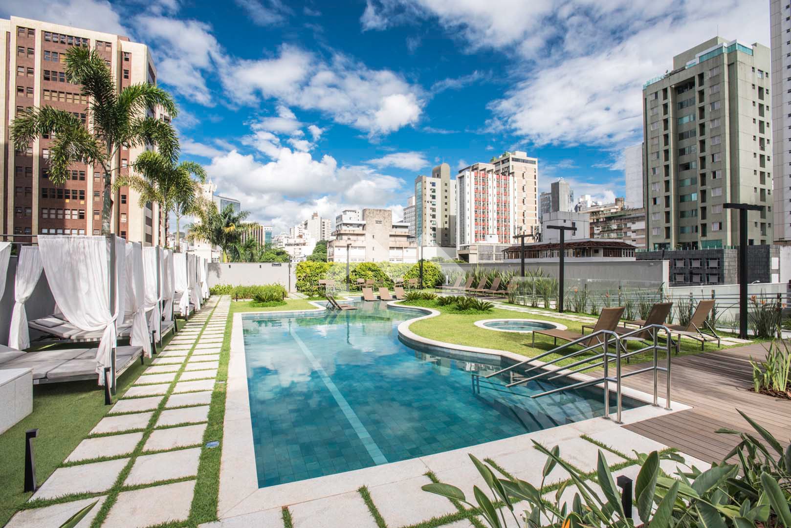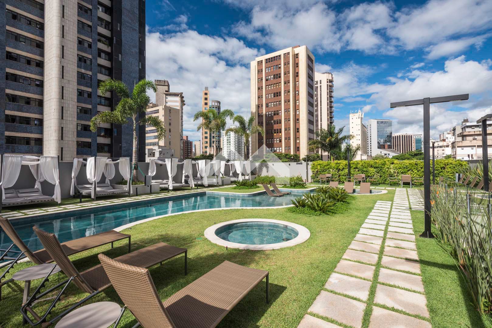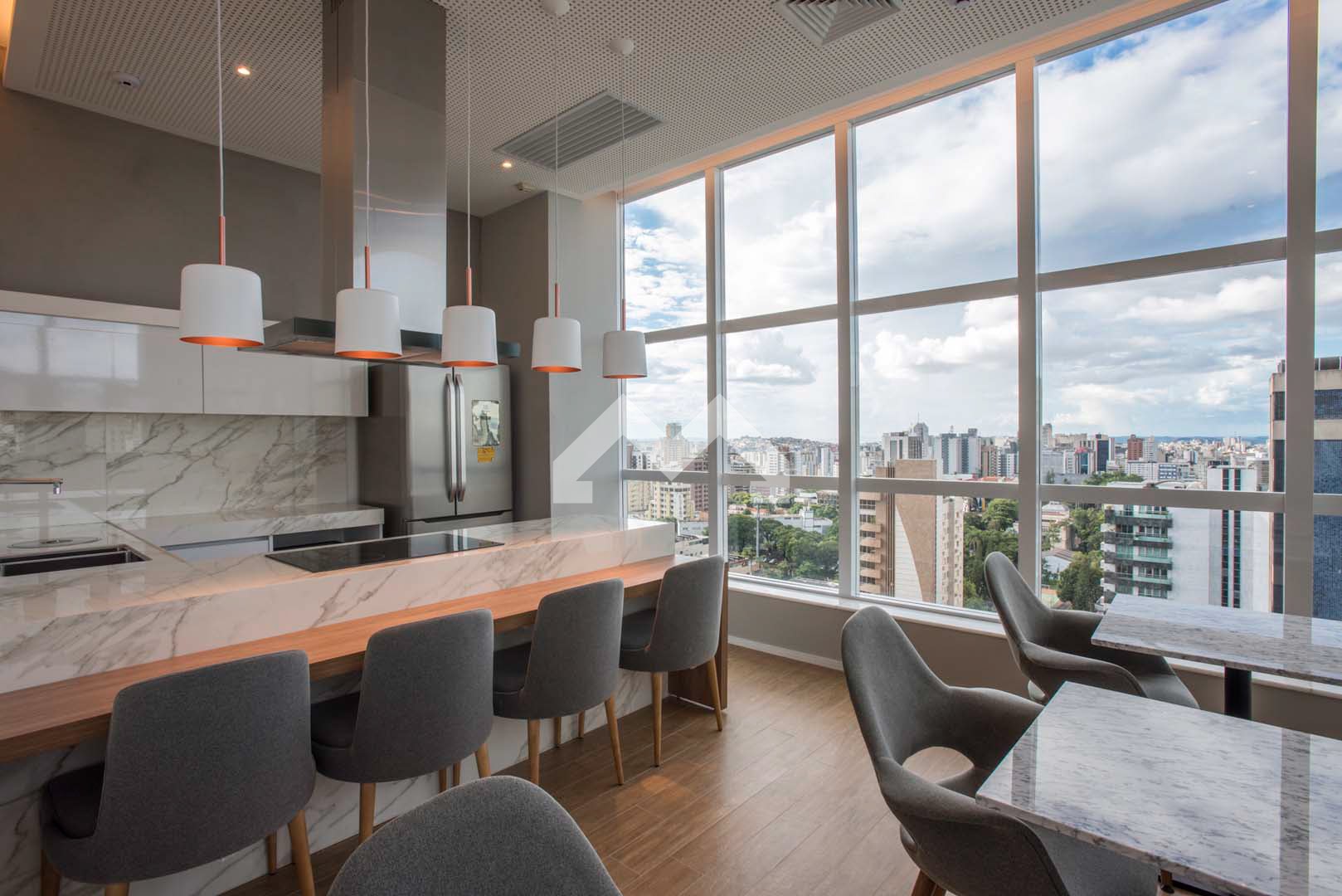 Excelente apartamento com acabamento em alto luxo, andar alto, vista panorâmica, na melhor localização da Savassi com área de 37m², 1 quarto com suíte, cozinha americana e 2 vaga de garagem com manobrista.