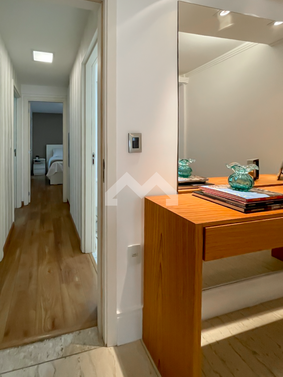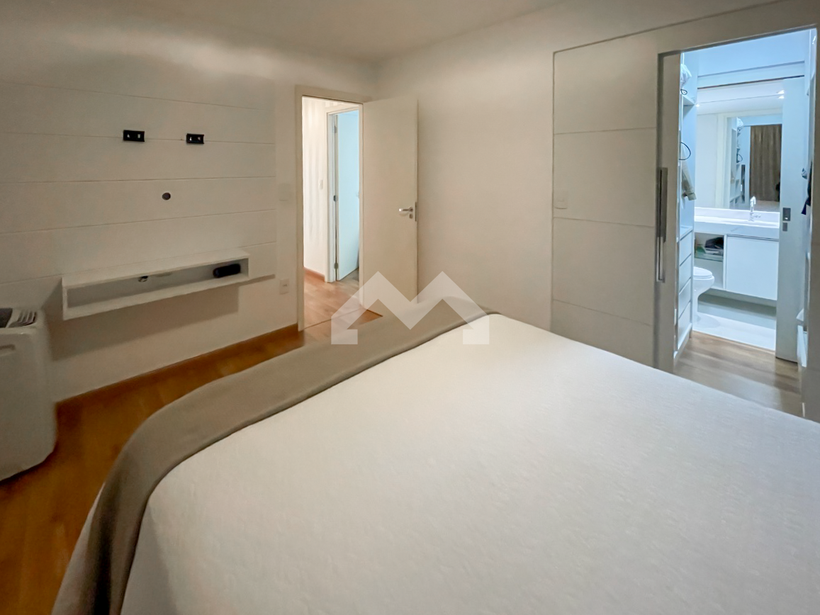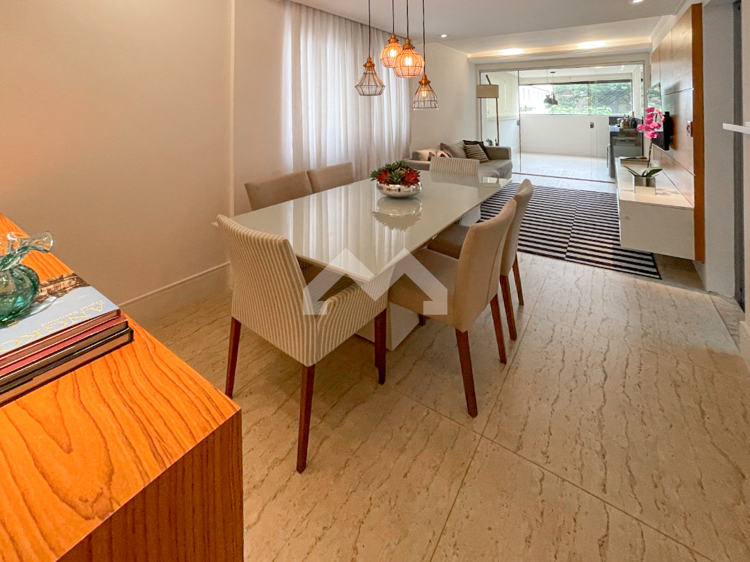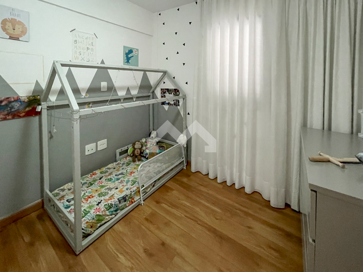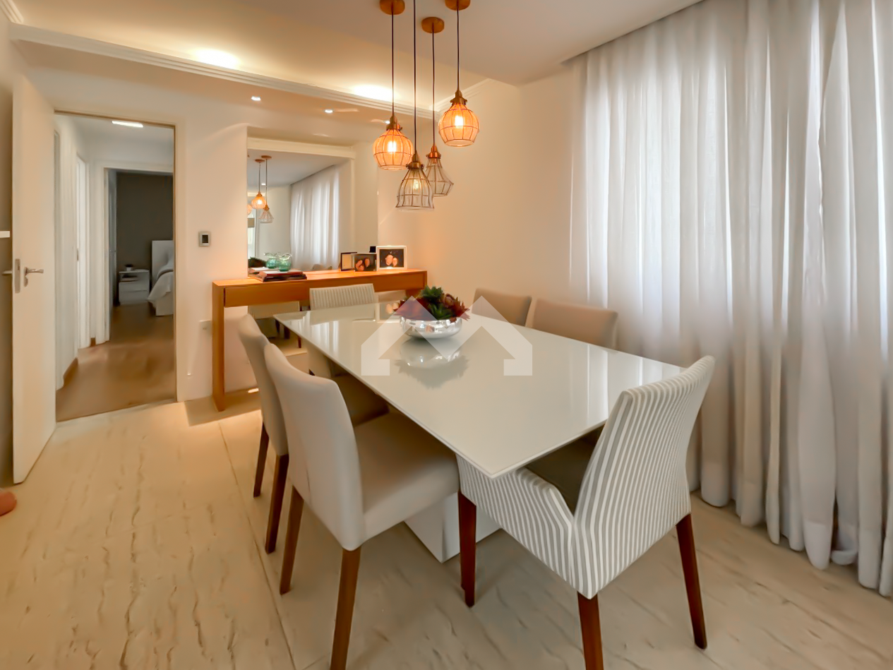 Excelente apartamento, 105 m². 3 quartos, sendo 1 suíte com closet. Todos os quartos tem armários planejados. Banheiro social com bancada em granito e box em vidro temperado Blindex. Sala ampla para dois ambientes e varanda. Cozinha com armários planejados, área de serviço e dependência de empregada. 2 vagas de garagens.