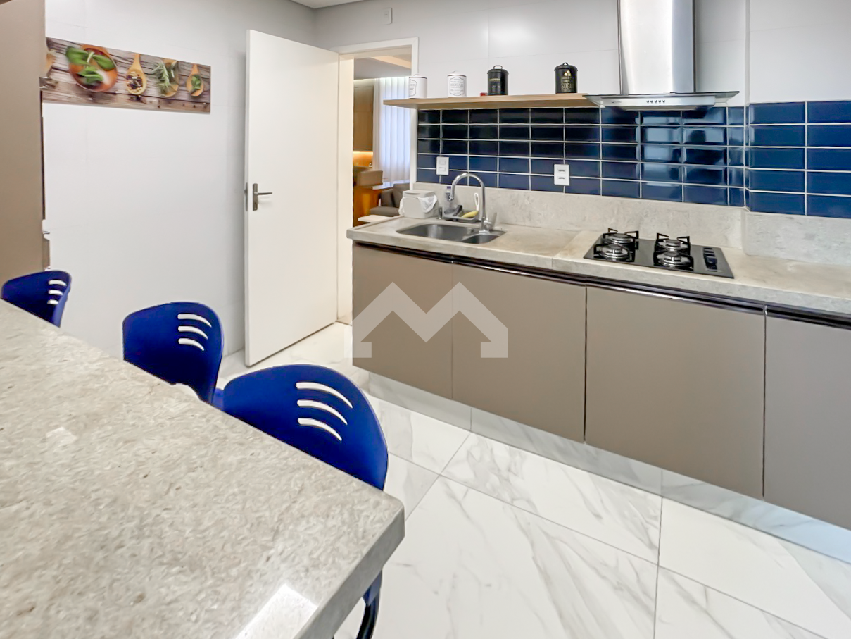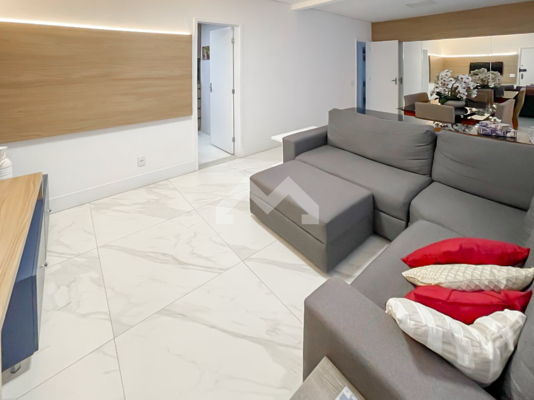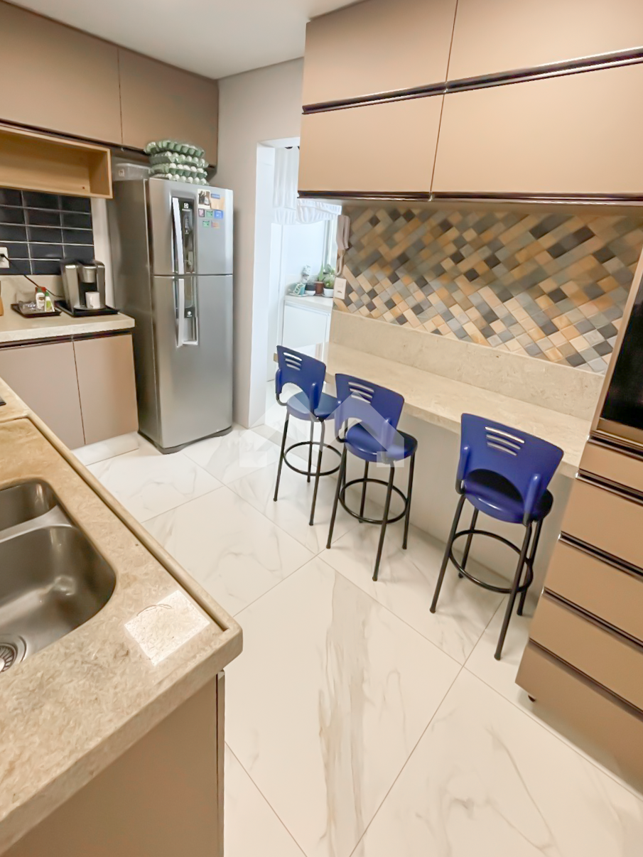 Lindo apartamento todo reformado, fino acabamento. 3 quartos, sendo uma suíte. 2 banheiros. Sala para 2 ambientes com teto rebaixado e iluminação planejada. Cozinha montada com bancadas em granito, fogão, forno e coifa. área de serviço. 1 vaga de garagem.