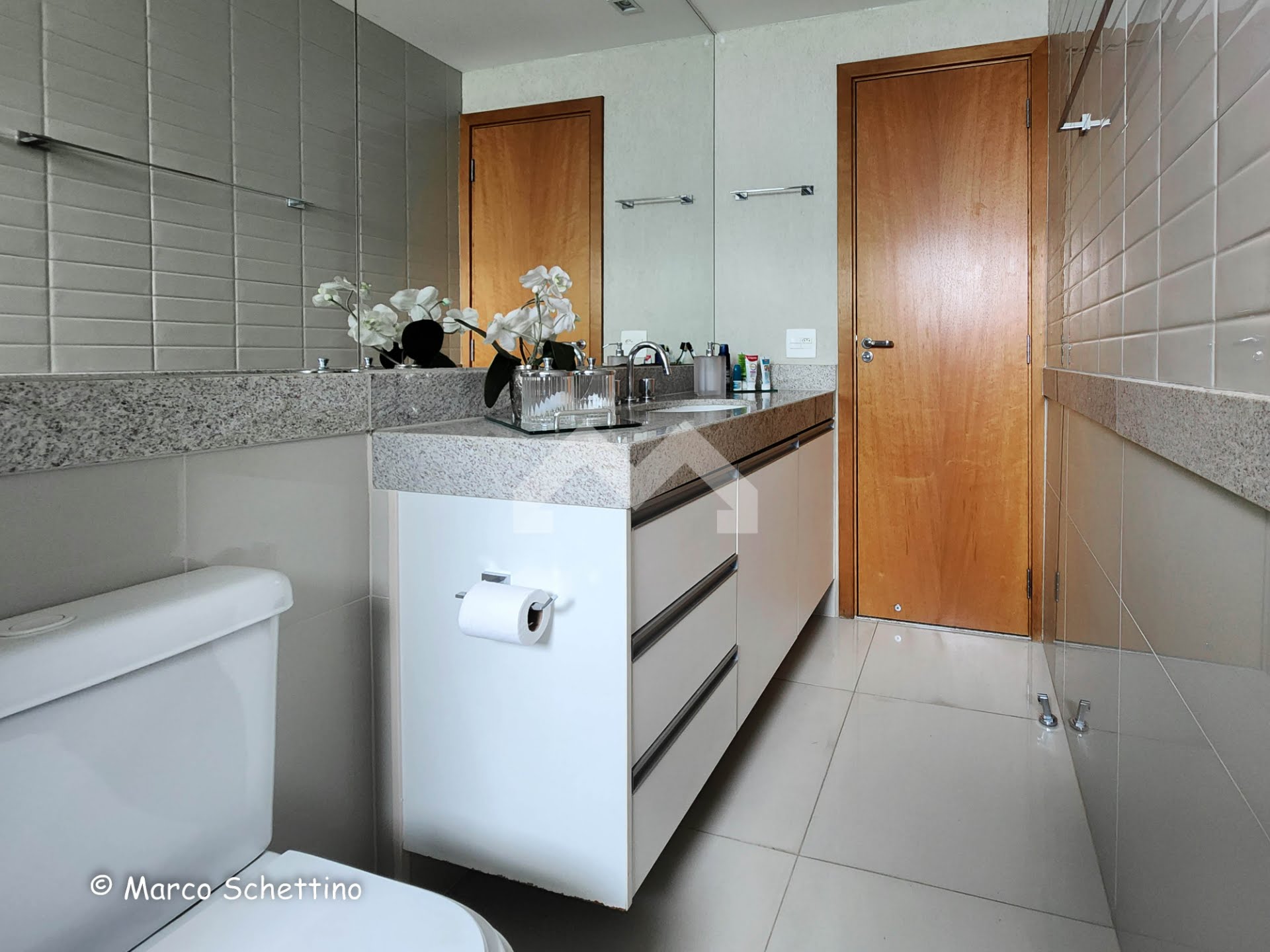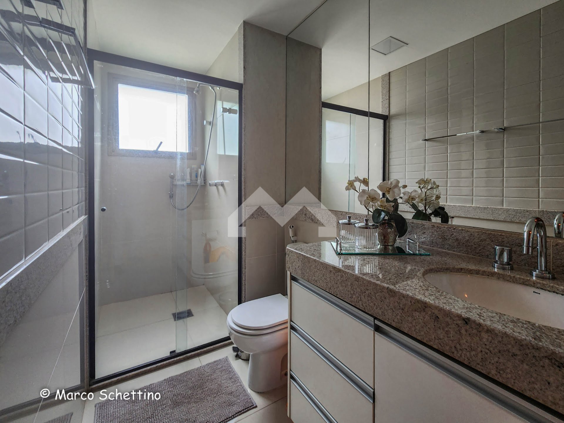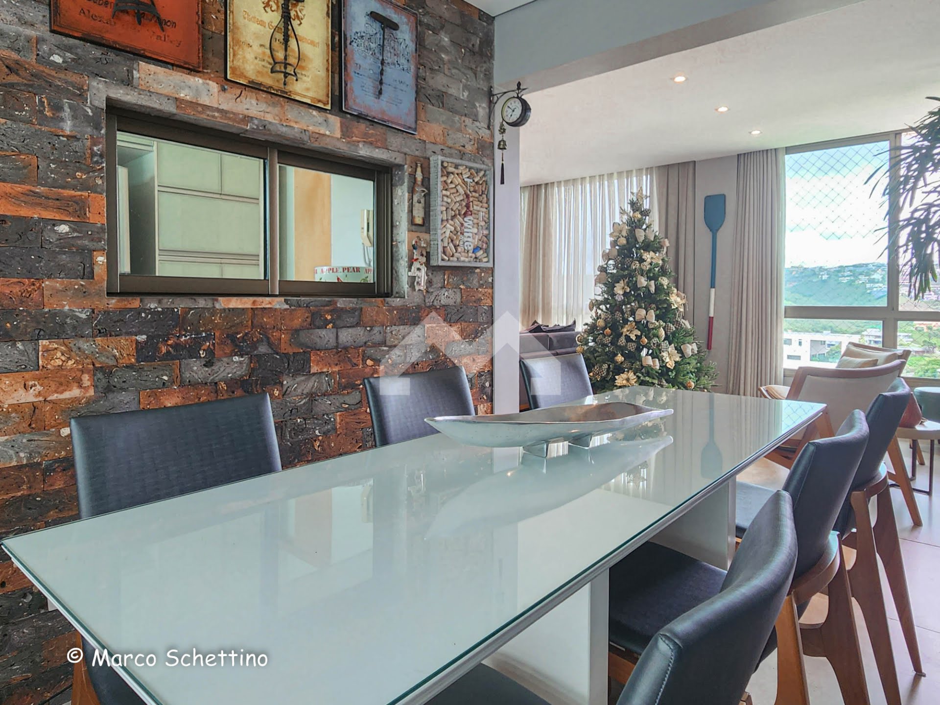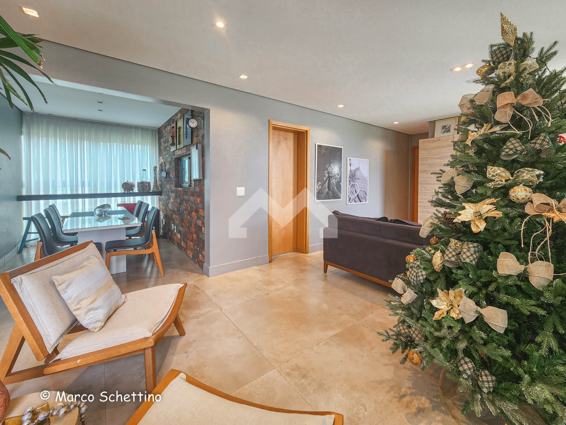 Maravilhoso apartamento com acabamento em alto padrão decorado com 117 m², 3 quartos, 3 banheiros sendo 1 suíte, ampla sala para 3 ambientes com linda vista, lavabo, cozinha com armários planejados, DCE completo com o quarto de apoio , área de serviço e 2 vagas de garagem livres.