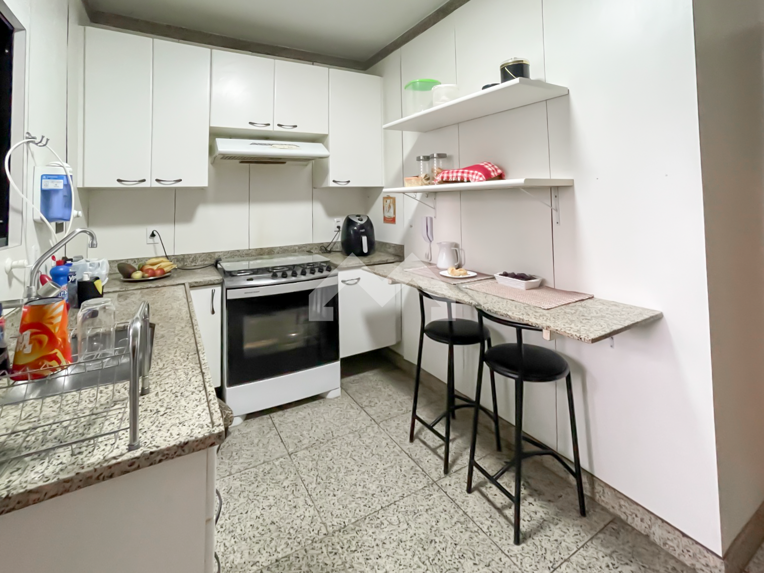 Ótimo apartamento, 100 m². 3 quartos, sendo 1 suíte com closet. Todos os quartos possuem armários. 1 banheiro social. Sala para 2 ambientes, varanda com linda vista. Cozinha com armários e bancadas em granito. Área serviço e dependência de empregada. 2 vagas de garagens.