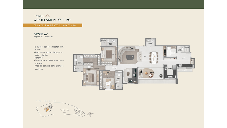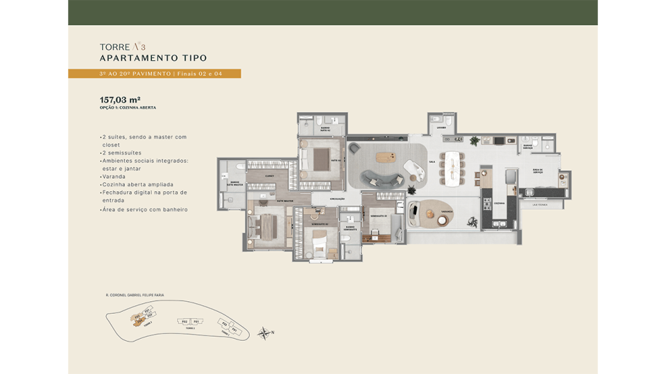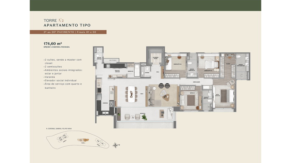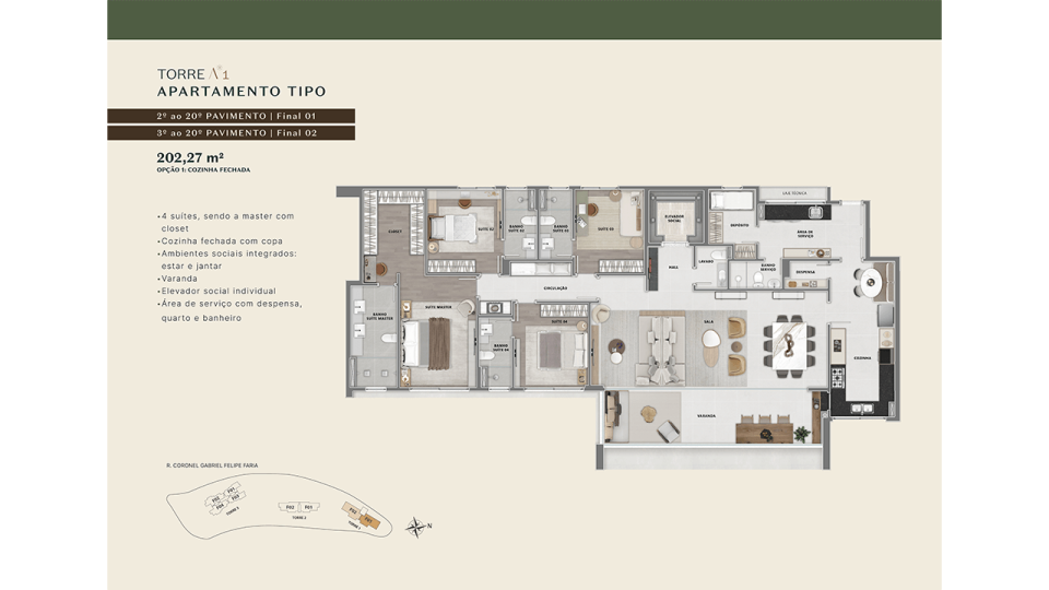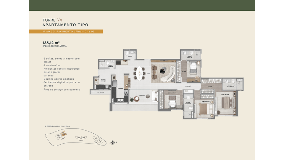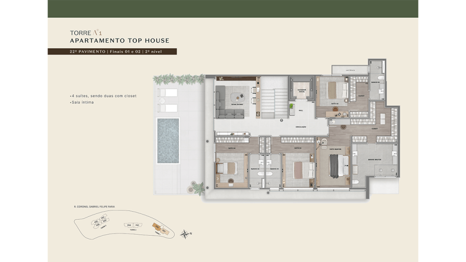 4 SUÍTES ou 2 SUÍTES + 2 SEMI-SUÍTES