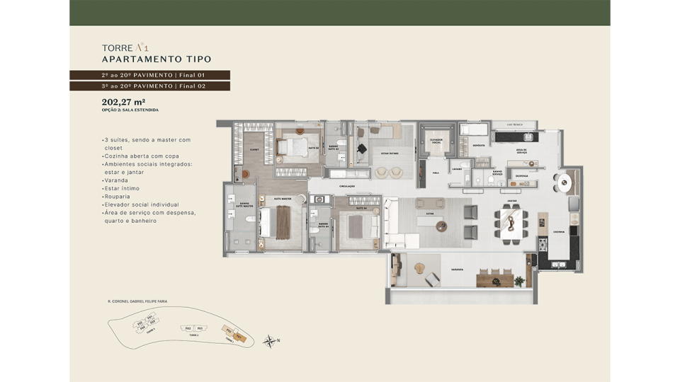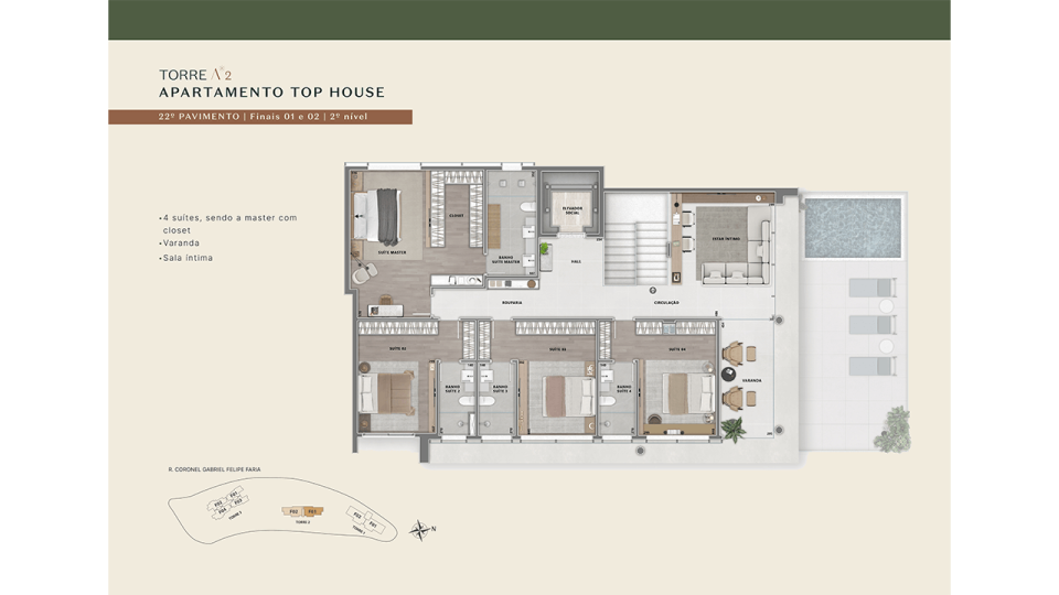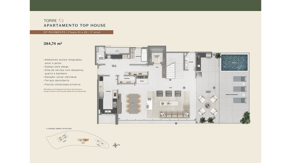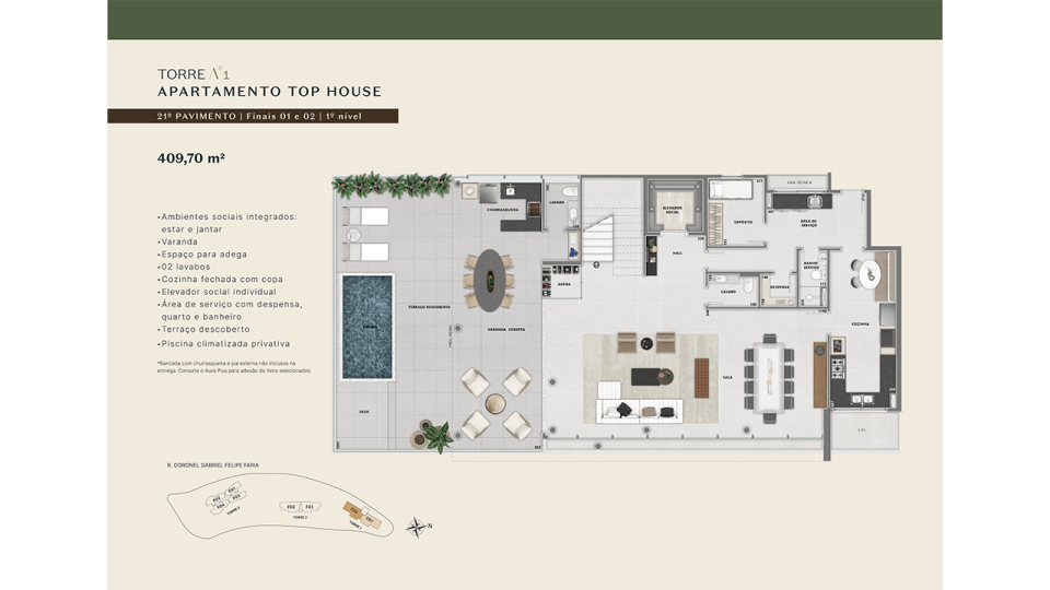 • Opções Duplex Top House e Coberturas de 290 m² a 409 m²