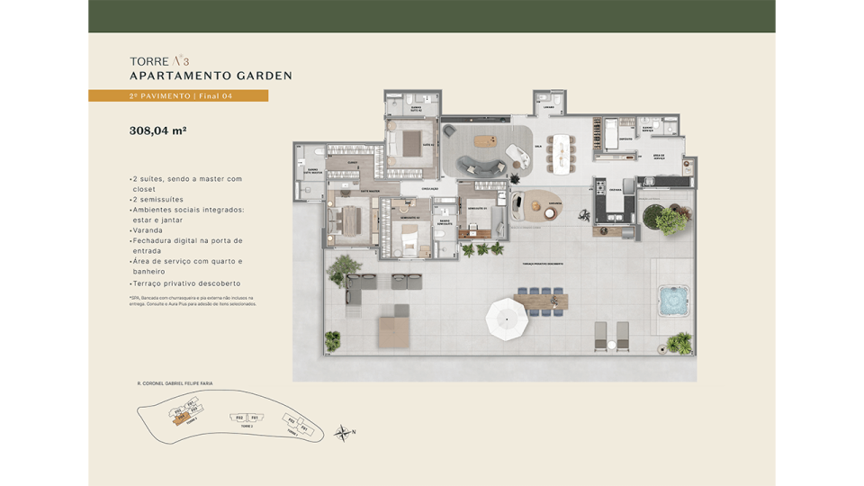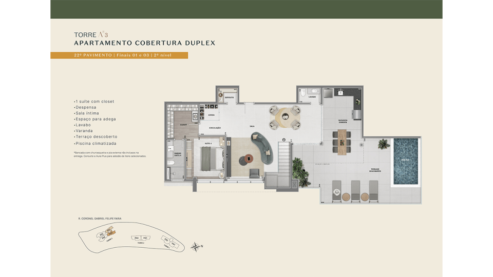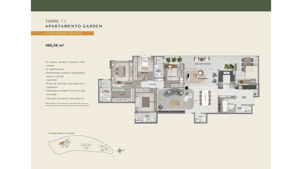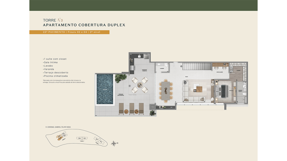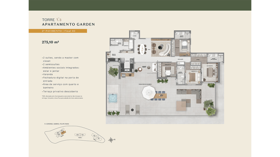 • Áreas comuns entregues decoradas e equipadas (mediante pagamento de taxa de montagem