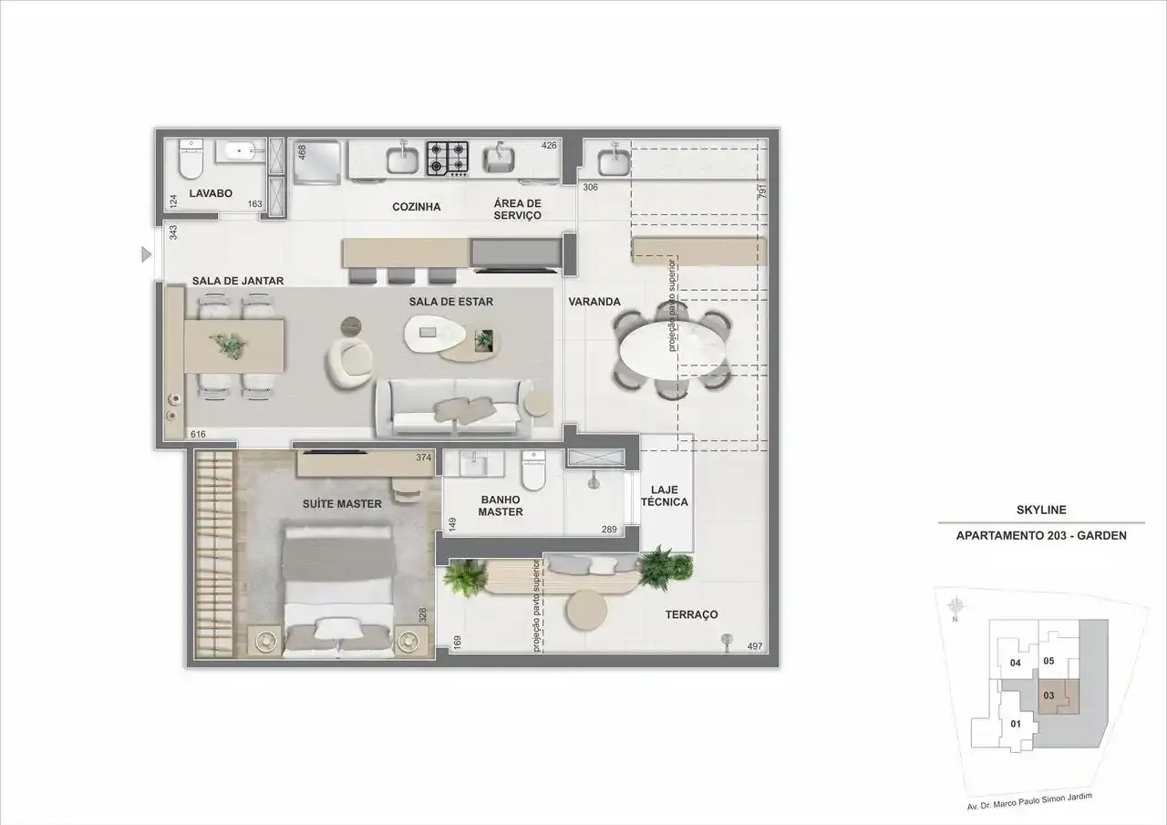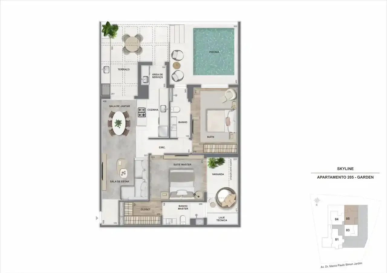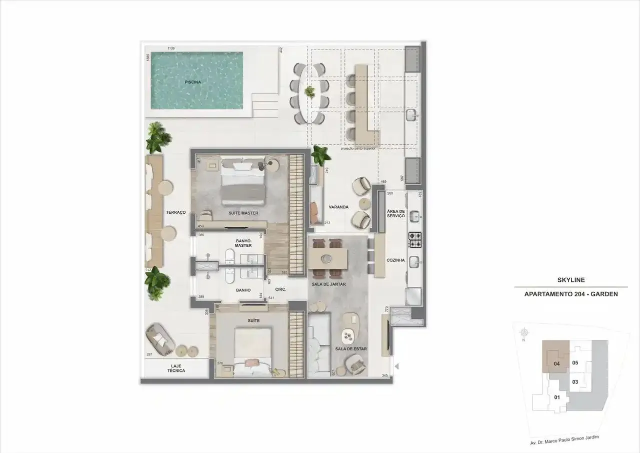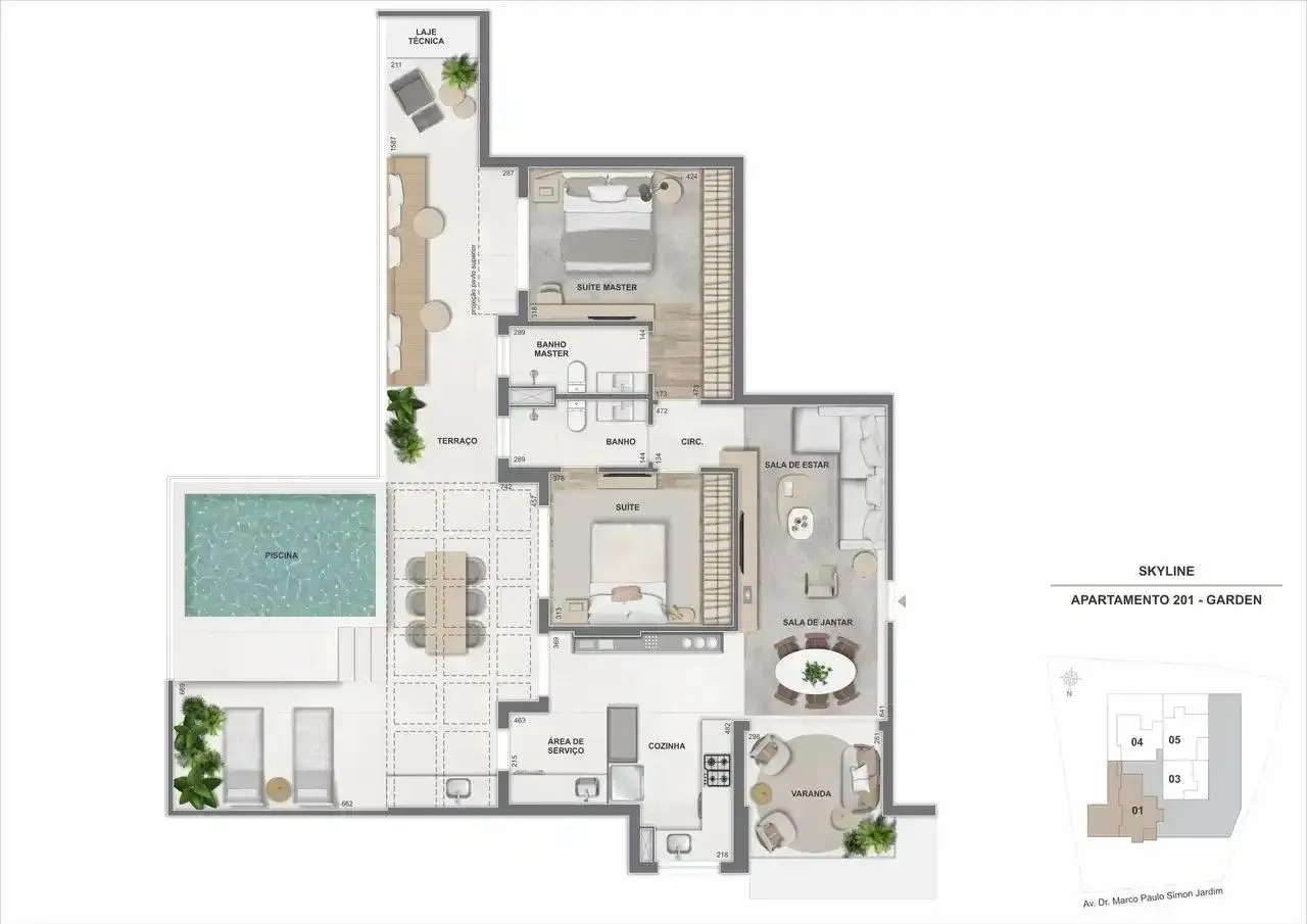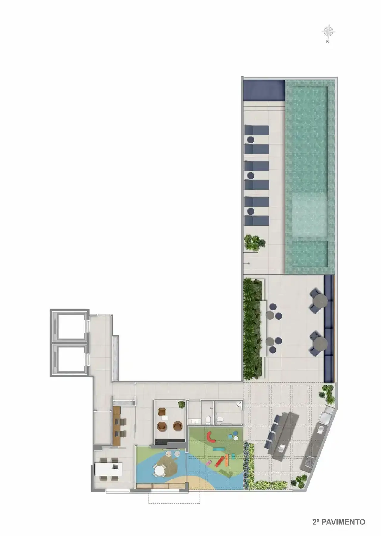 • 01 pavimento de área comum e de apartamentos garden (2° pavimento);