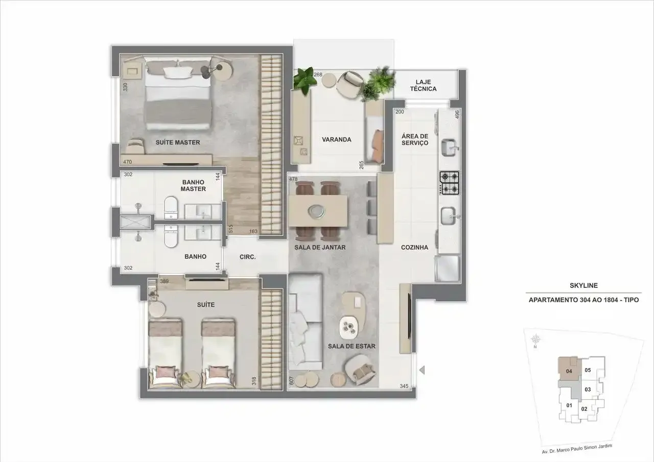 • 16 pavimentos de apartamentos tipo (3°* ao 18° pavimentos);