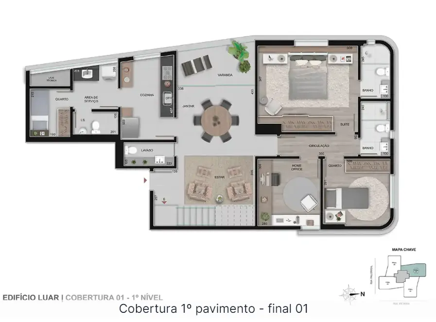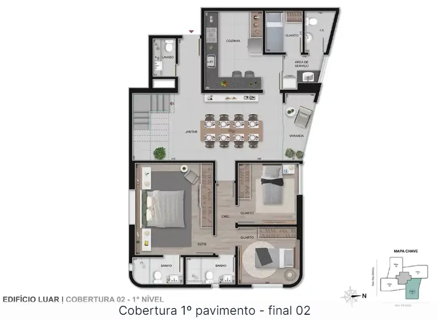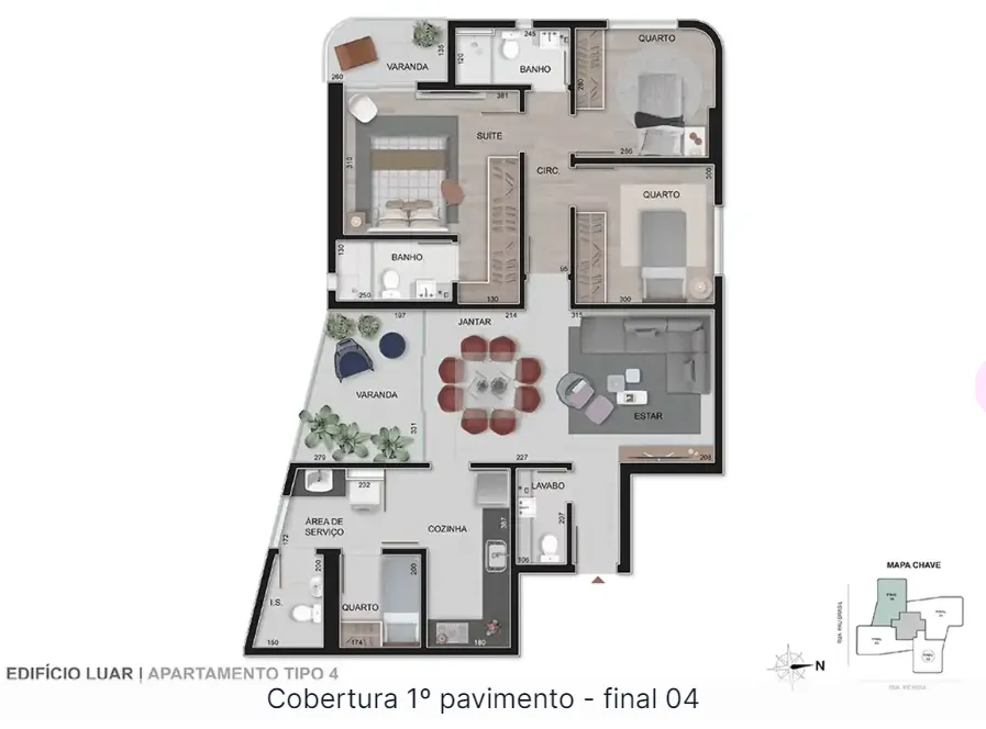 - 4 coberturas de 4 quartos, sendo