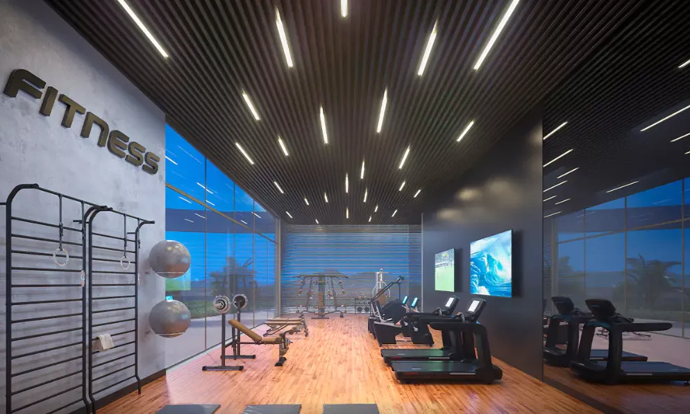 - Salão de festas com tratamento acústico no forro e no terraço
